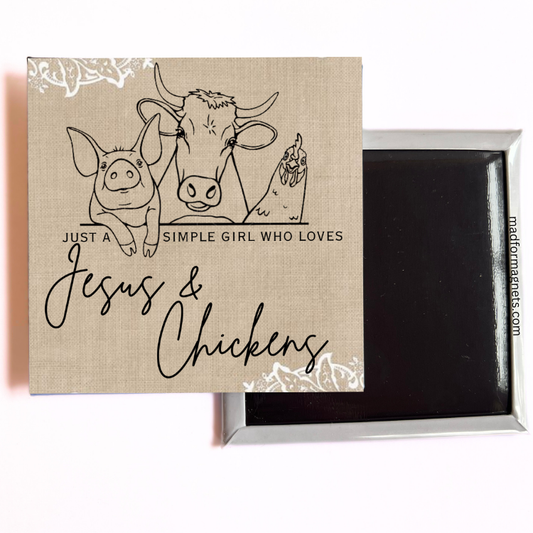 Farmhouse Magnet: Jesus & Chickens with Rustic Design