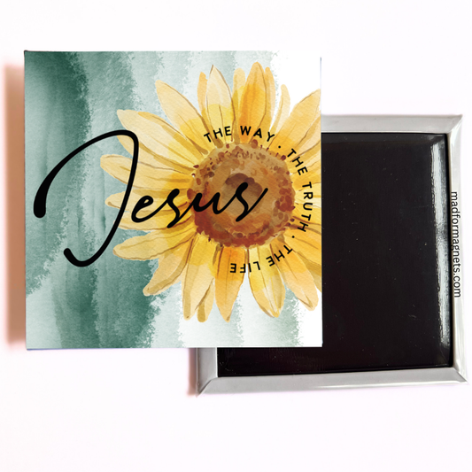 Inspirational Sunflower Magnet: Jesus (The Way, The Truth, The Life)
